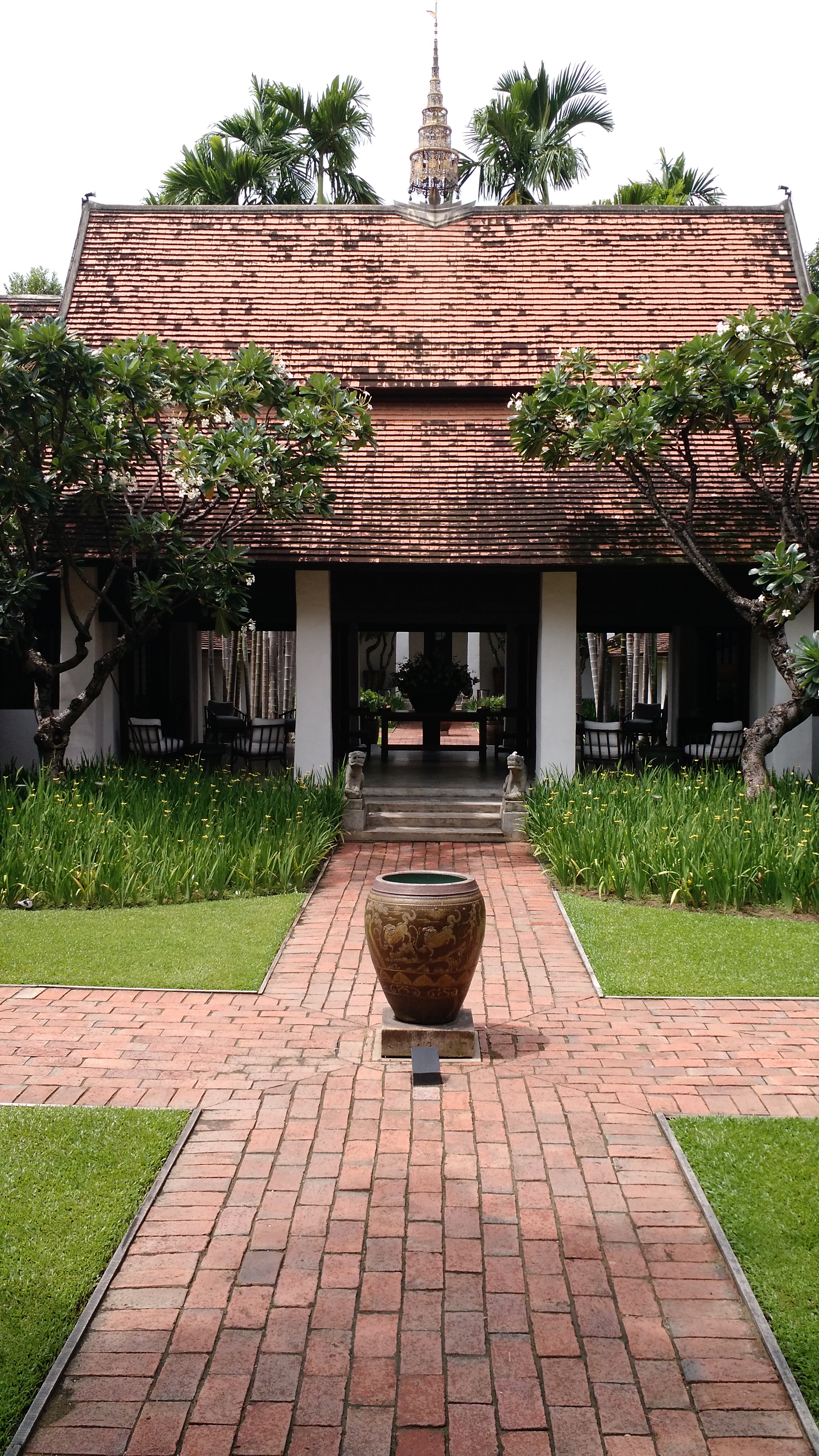 The rooms are also furnished in Asian antiques(armoire, desk, night stands, chest of drawers). For a small hotel they have an amazing restaurant. During our last stay we ate all four dinners here and will do the same again. When you have the best restaurant in Chiang Mai, why look around. Breakfast, which is included, is done off an ala carte menu not the stuff your face buffets. You are served in the dining room or outside terrace by their wait staff. All dishes are bone China and the glassware is cut crystal (except juice glasses). I’m actually beginning to like classical music.