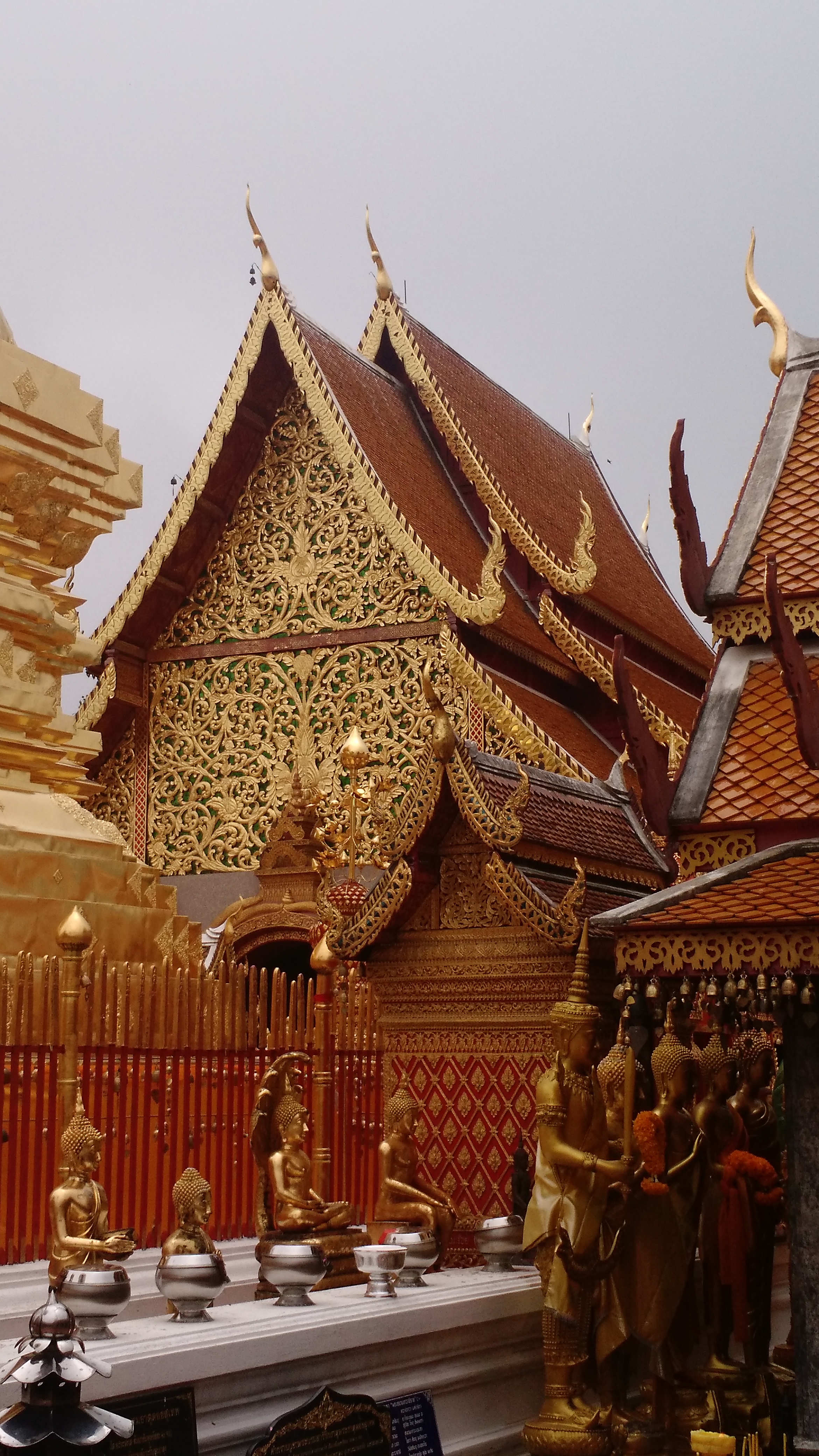 Wat Phra That Doi Suteph is one of the holiest temples in Theravada Buddhism. Founded in the 1300’s when Buddhism arrived into South East Asia. Buddhist Ceylon (Sri Lanka) shipped tea throughout Asia (and onto England).Hindu India shipped their plethora of spices the same route.The route was overland into China and onto the Silkroad into the Middle East and Europe. The one problem was the constant invasion and robberies and death at the hands of the Monghal hordes. The solution was to sail East over the Bay of Bengal and run the tea and spices overland through Southeast Asia (Thailand, Burma, Cambodia, Laos, Vietnam) to the South China Sea and sail the good north into China avoiding Mongolia.