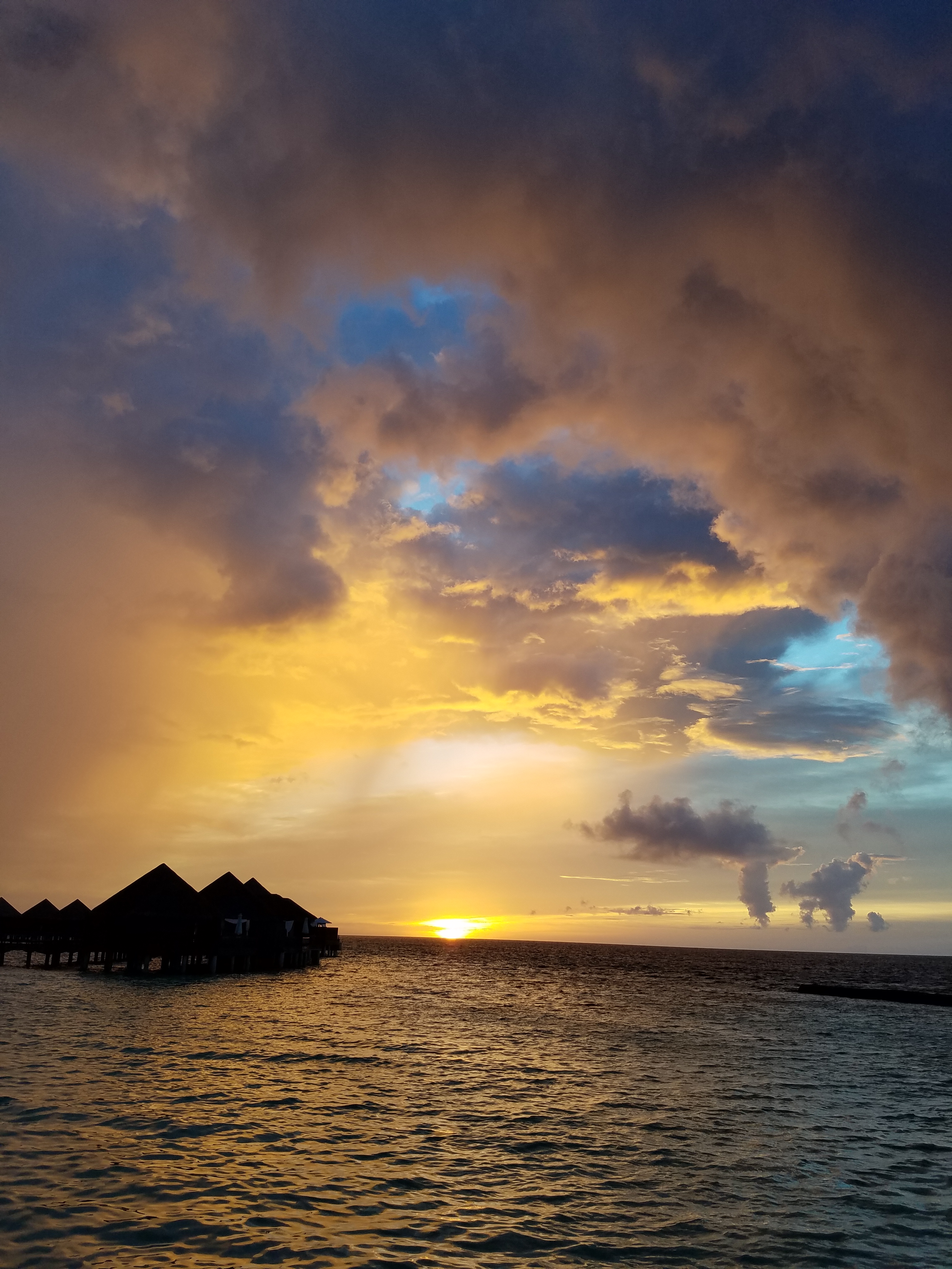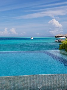 4.5 hour flight into Male, Maldives from Singapore. The Maldives are located about 1,000 miles off the southern tip of India in the Indian Ocean at about 7-8 o’clock. The Maldives is a nation of over 1,200 islands. Their population is 375,000 people. Half live in Male, the capital. 200 of the islands are inhabited. 100 of the islands are luxury resorts which occupy the entirety of their island. We sit on one of these.We choose Baros because it was a half hour speedboat ride from Male. Most of the other island resorts (where the rich and famous go) require seaplane flights of up to one hour to get to.